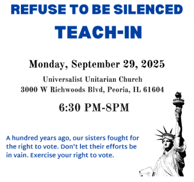 ![]() | Watch our most recent teach-in, during which we heard from local leaders and experts on the impact of federal policy on immigration enforcement, vaccine access, DEI, and education. YouTube video of the livestream is below. The speakers were: • Peoria County Sheriff Chris Watkins • Peoria City/County Health Department Public Health Administration Monica Hendrickson • Vice President of Workforce and Diversity at Illinois Central College Arnitria Shaw • Peoria County Regional Superintendent Dr. George McKenna and Tazewell County Regional Superintendent Dr. Jeff Ekena • Chris Kaergard, President of LWVGP, summarizing the information from our prior events, including voting rights, funding for public broadcasting, and more